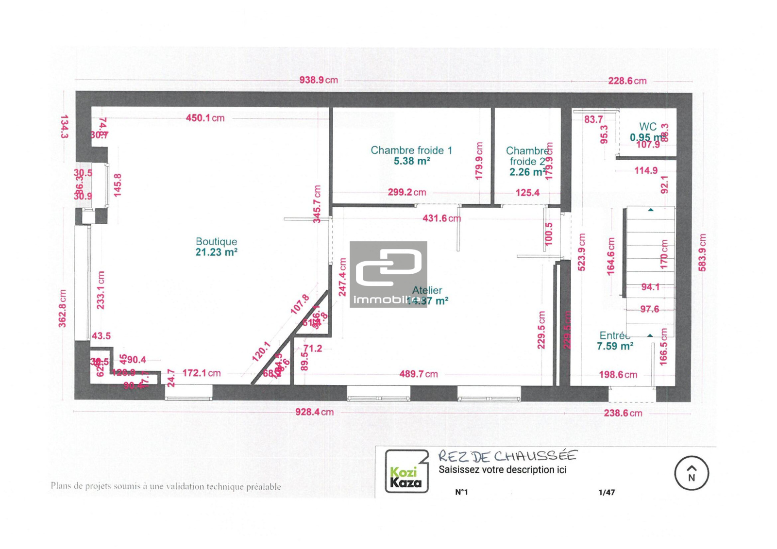 Surface fonds de commerce : 45.10 m² DPE Vierge
