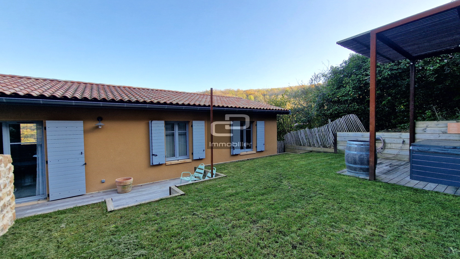 Déjà VENDU avec CD IMMOBILIER SAS : Une splendide vue panoramique à l'est sur le val de Saône et un jardin au calme avec Spa à l'ouest à Poleymieux au mont d'or. Comme une maison de plain-pied sur sa terrasse et son jardin dans un environnement calme et verdoyant aux portes de Lyon à Poleymieux au mont d'or. Avoir le plaisir de vivre dans une maison achevée en 2022, dans un intérieur contemporain aménagé avec goût. Une pièce de vie lumineuse, traversante et spacieuse, avec une cuisine aménagée et entièrement équipée. L'espace nuit se compose de trois chambres, d'une belle salle de bain avec douche et baignoire ainsi que d'un meuble double vasque. Chaque chambre ainsi que l'entrée disposent de placards dressings aménagés. Le wc suspendu est séparé. Le chauffage est assuré par pompe à chaleur au sol dans tout l'appartement. Pour votre confort, une chaufferie-buanderie ainsi qu'un garage sont directement accessibles depuis l'entrée. Trois places de stationnement complètent ce bien. Ce T4 de 90m² est décoré avec soin, et comprend des prestations de qualité telles que le parquet chêne, les tapisseries haut de gamme, les équipements sur mesure, la terrasse bois, et le Spa. Ce bien surplombe un second logement lui aussi totalement indépendant. La copropriété en cours de création comprendra deux lots principaux. Les charges sont estimées à 150 € annuels pour l'assurance de la copropriété. Contactez Christèle LEHOUX VOLCOFF pour CD IMMOBILIER SAS à Couzon au mont d'or au 06.08.54.43.01 pour visiter ce très bel appartement.