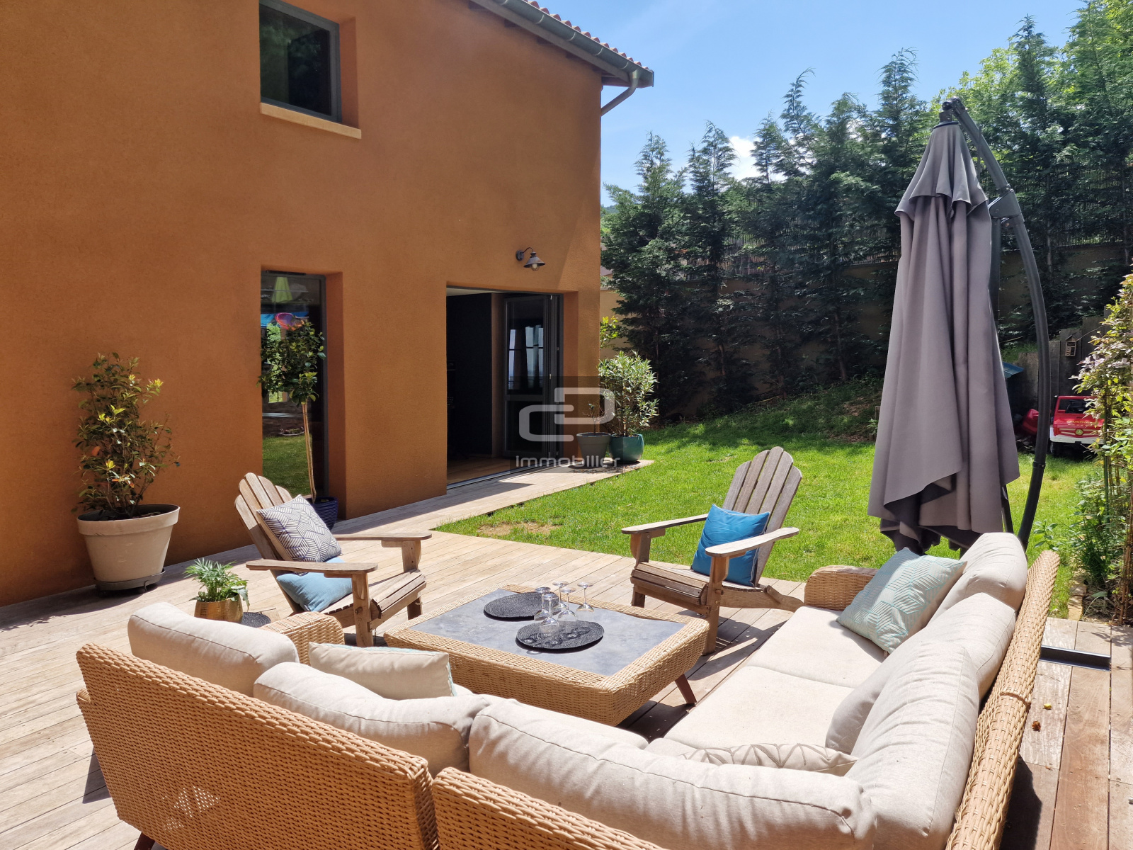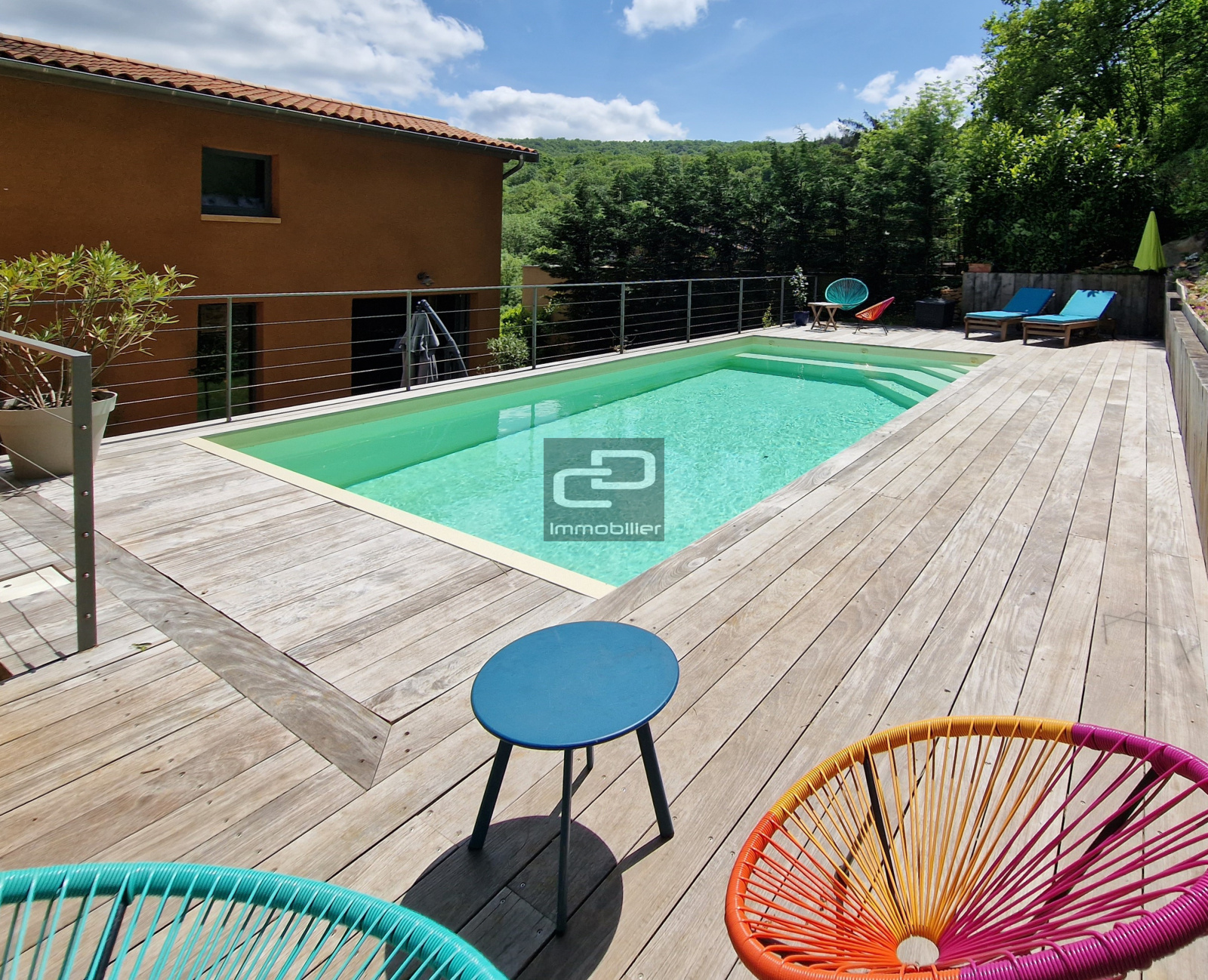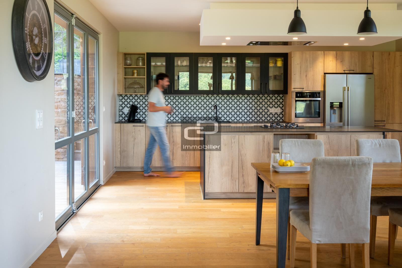 A Poleymieux au mont d'or, CD IMMOBILIER vous présente en exclusivité cette maison d'architecte achevée en 2022. Lumière, volumes et matériaux ont été définis pour un confort exceptionnel. Les façades en pierres dorées offrent le charme de l'ancien dans un environnement privilégié, et tout le confort moderne est présent dans l'agencement intérieur. Lumineuse en toute saison grâce à sa quadruple exposition, elle offre un espace de vie exceptionnel de 105 m² sur terrasse et jardin avec piscine. Un salon de réception confortable offre une vue panoramique sur la vallée, et permet de profiter de la chaleur douce de sa cheminée. La cuisine aménagée sur mesure bénéficie de larges plans de travail ainsi que de tous les équipements. Le parquet en chêne, la cheminée traversante, le mur entièrement vitré sur vue, les nombreuses ouvertures et baies sont autant d'exemples des prestations de qualité réalisées. Chaque matériau à été choisi avec soin. L'étage comporte un vaste dégagement, lequel dessert deux chambres master avec dressings et salles d'eau contemporaines de 21 et 24 m², deux chambres de 12 et 13 m² avec placards aménagés sur mesure, une salle de bains, et une buanderie. Les salles d'eau comprennent de véritables douches italiennes réalisées dans les règles de l'art avec des grès cérame aux sobres motifs gravés.