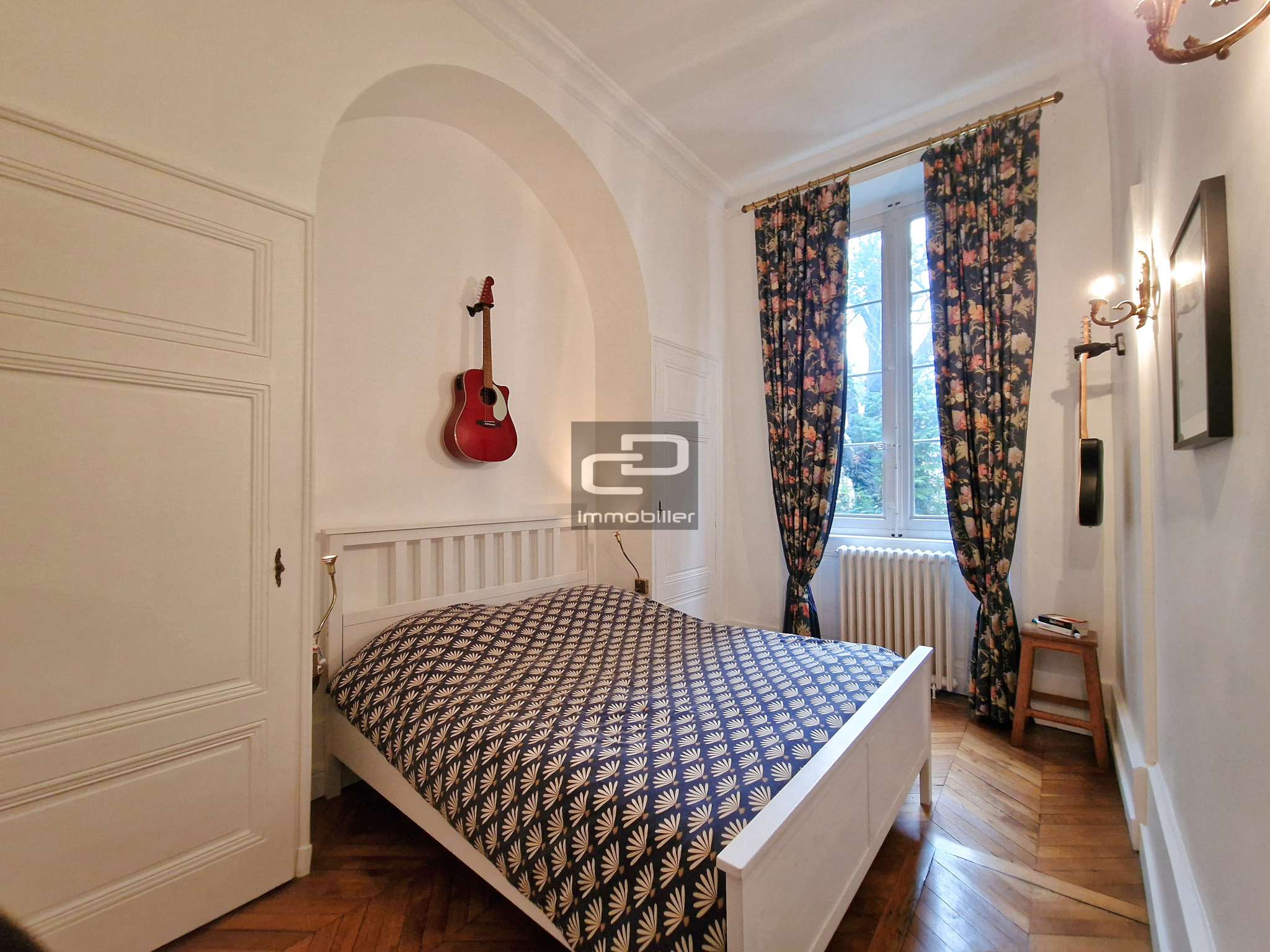 Au rez de chaussée d'une superbe maison de Maître, ce T5 de 142 m² carrez vous séduira par son charme, ses parquets, cheminée, moulures et hauteurs de plafonds. Son jardin, face à sa terrasse, privatifs vous permettront de jouir des extérieurs aux beaux jours. Il se compose d'une cuisine séparée, d'un salon sur terrasse et jardin, de trois chambres, une salle d'eau, et en souplex une quatrième chambre avec ses wc et sa salle de bains. Le charme, incontestable des lieux, au seing d'une demeure bourgeoise de 1920 et ses 2425 m² de jardin, mise en copropriété en 1958, dans le respect des lieux avec 7 lots d'habitations, vous séduira sans aucun doute. La chauffage est produit par pompe à chaleur individuelle. L'appartement bénéficie d'un garage, de 3 places de stationnement, et de trois grandes caves.